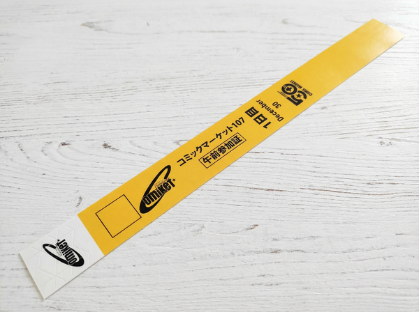 這是C97的綠色的入場手環,上面有黏雙面膠,可以黏在手上,我還看到有人用塑膠保護套套著掛在脖子上,可以留作紀念,非常聰明!