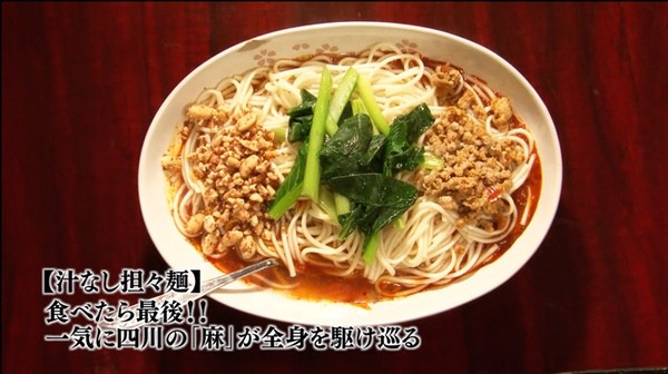 就在其中,不知為何被一間店吸引而走了進去。他從菜單中選了令他心動的「煎餃」與「拌三絲」,另外還點了周圍客人幾乎都在吃的「乾拌擔擔麵」。正當五郎細細品味煎餃與拌三絲時,吃著乾拌擔擔麵的客人們突然一個個發出「嘶——!」的慘叫聲!